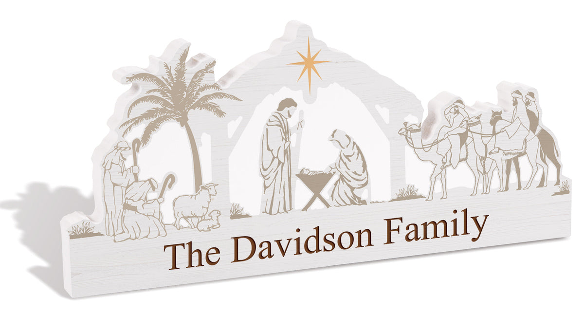 Personalize this Christmas-themed shape sign that makes for the perfect accent on a desk, bookshelf, or windowsill.