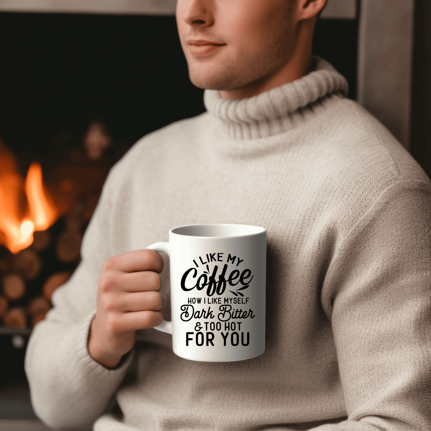 Embrace your bold personality with our exclusive "I like my Coffee how I like Myself: Dark, Bitter & Too Hot for You" coffee mug. This mug is more than a caffeine vessel; it's a statement piece.