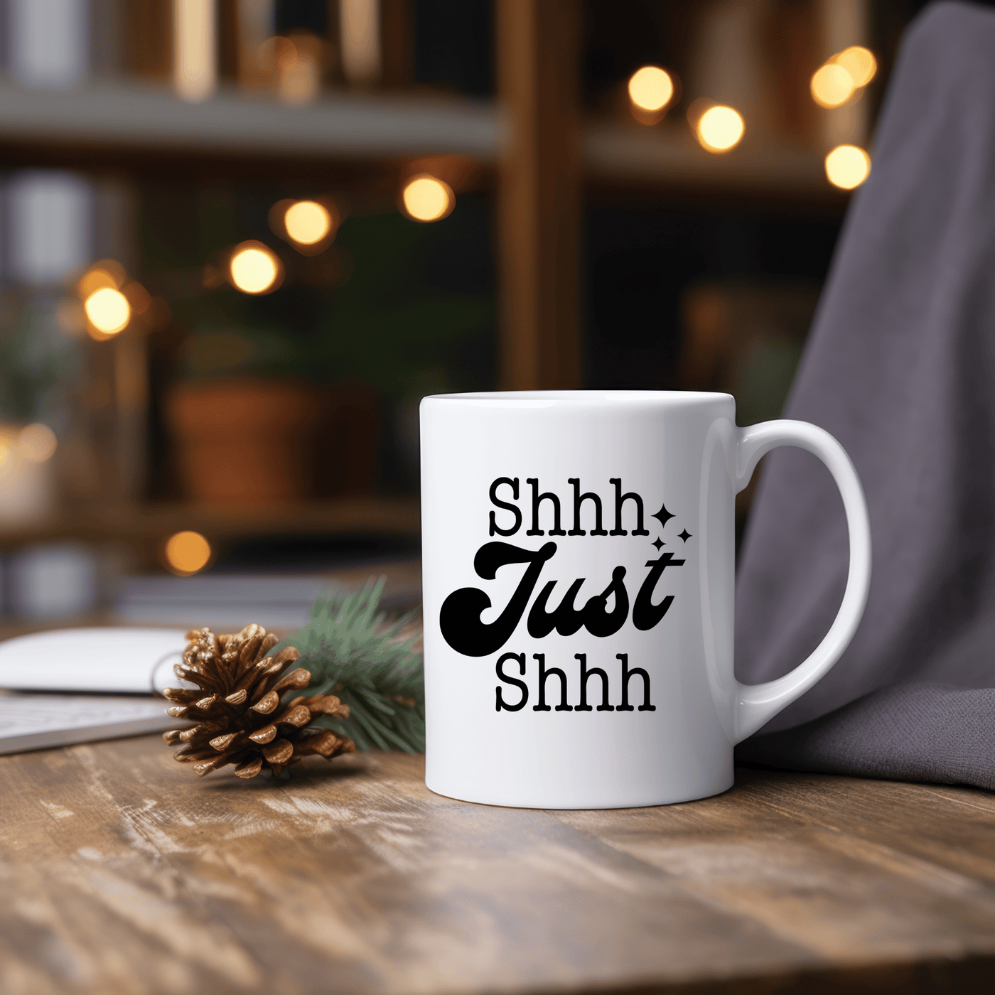 Embrace the tranquility of your coffee ritual with our exclusive coffee mug featuring the simple yet powerful message: "Shhh Just Shhh."