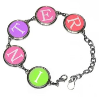 Personalized jewelry is such a hit across many demographics - customize this adorable five-piece charm bracelet with a series of themed photos, a monogram, pattern, or trendy design! The silver bracelet chain features five separate round charms. Transfer your photos to the gloss white inserts for a beautifully unique style!