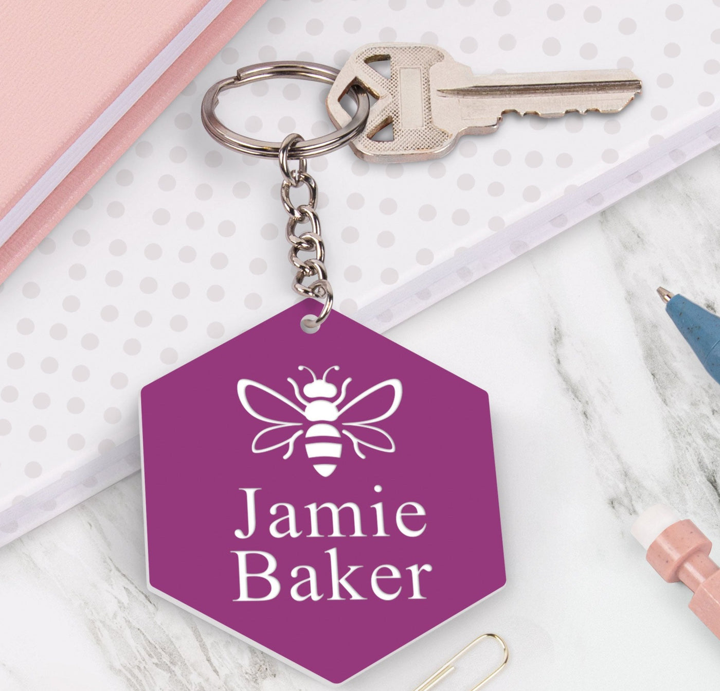 Each of these key chains features bold colors, fun fonts, and your custom sentiment -- makes for a convenient and thoughtful gift. Using the key ring, easily attach to a set of keys or tote bag to add a personal touch.