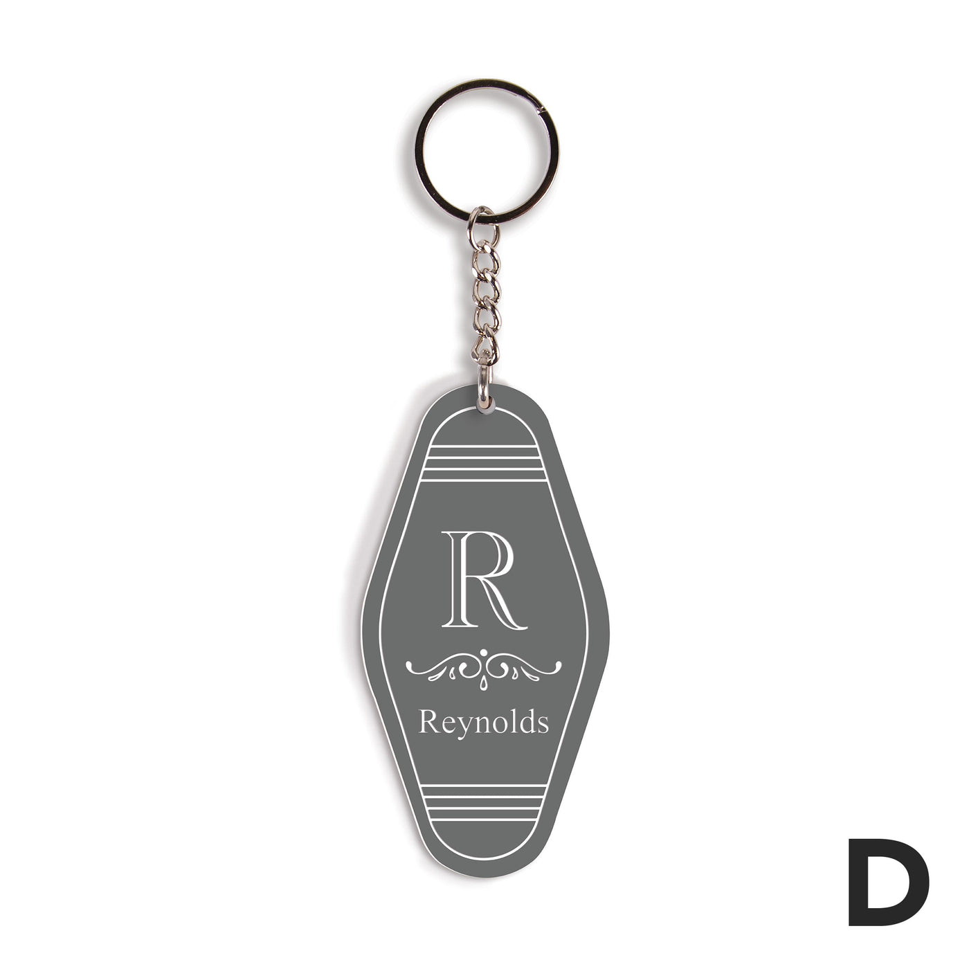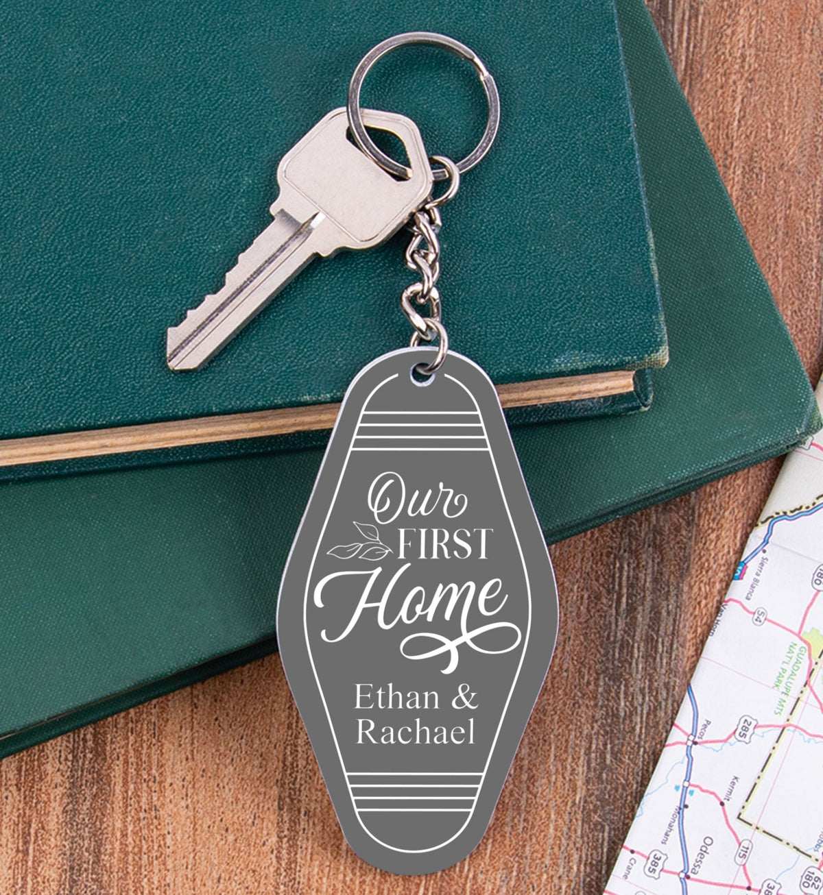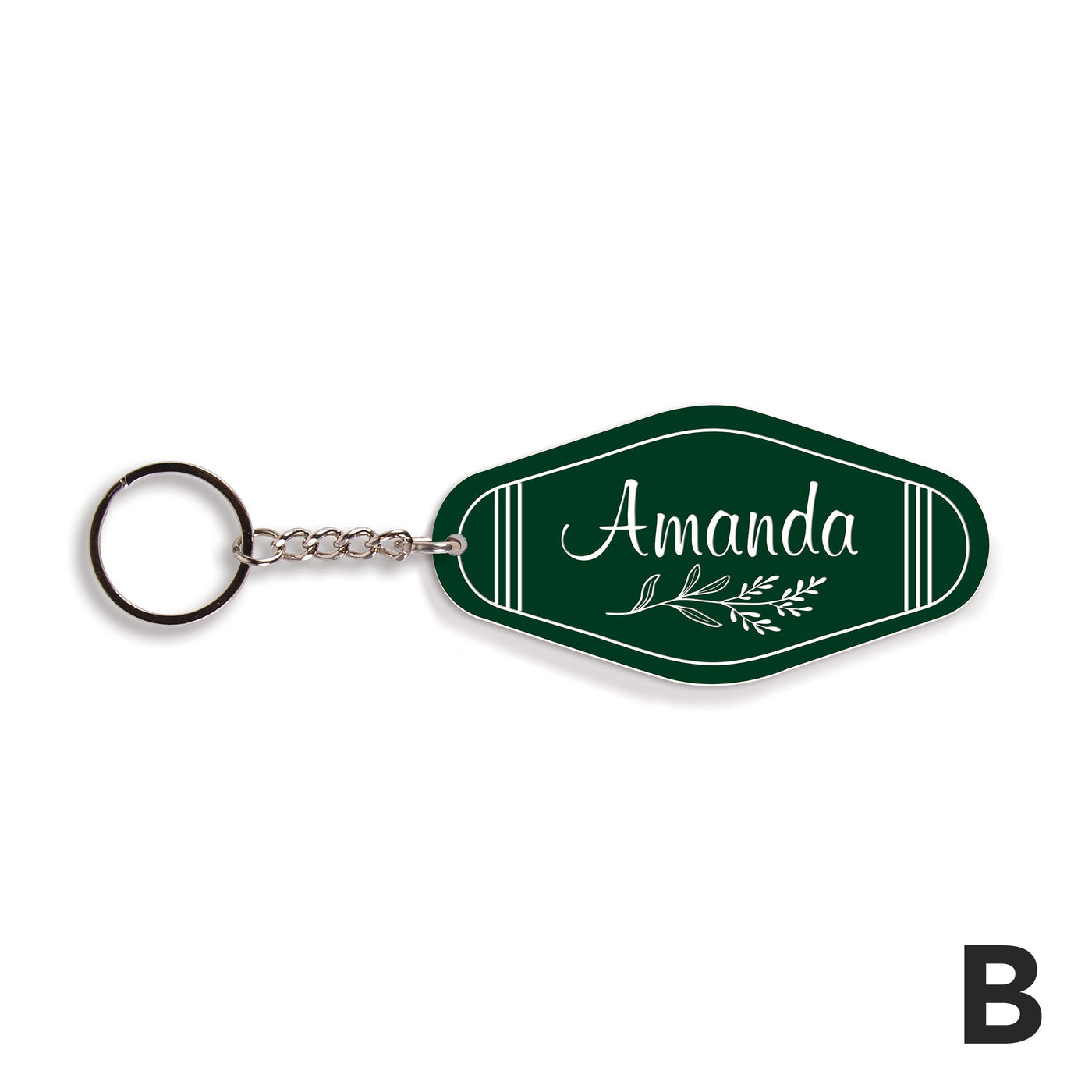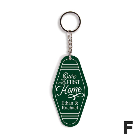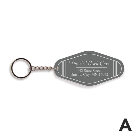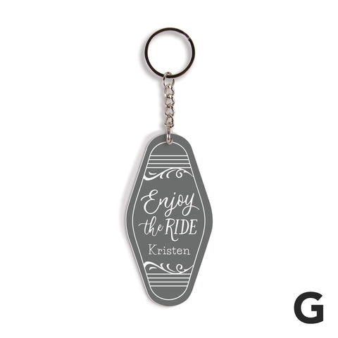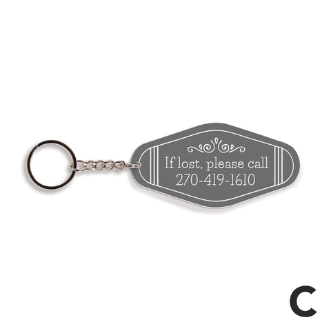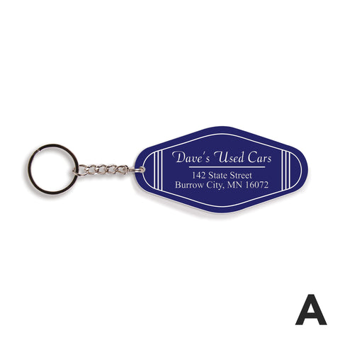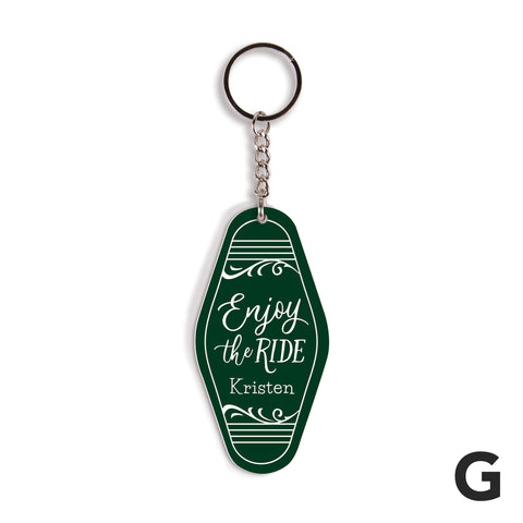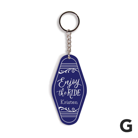Shaped to resemble a vintage motel key tag, each of these key chains features bold colors, fun fonts, and your custom sentiment -- makes for a convenient and thoughtful gift. Using the key ring, easily attach to a set of keys or tote bag to add a personal touch.