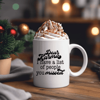 Introducing our exclusive "Dear Karma, I Have A List Of People You Missed" mug – the perfect blend of humor and style. This high-quality ceramic mug is a witty way to enjoy your favorite beverage while adding a touch of sass to your day.