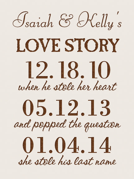 Make a simple yet sophisticated statement in your home with this piece of art and make it personal by adding names, date and sentiment. The perfect gift for any occasion.