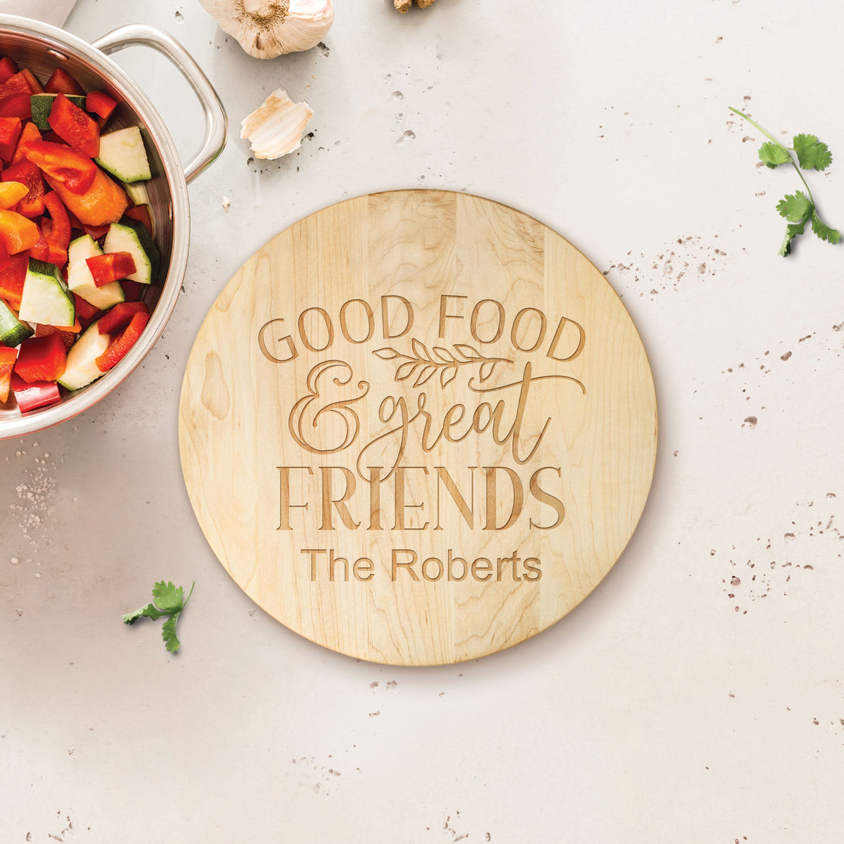 Crafted from maple hardwood, this cutting board is perfect for slicing fruit, vegetables, meat - you name it! Left intentionally blank, this cutting board will seamlessly blend in to any kitchen décor, or can also be personalized with your own unique artwork.