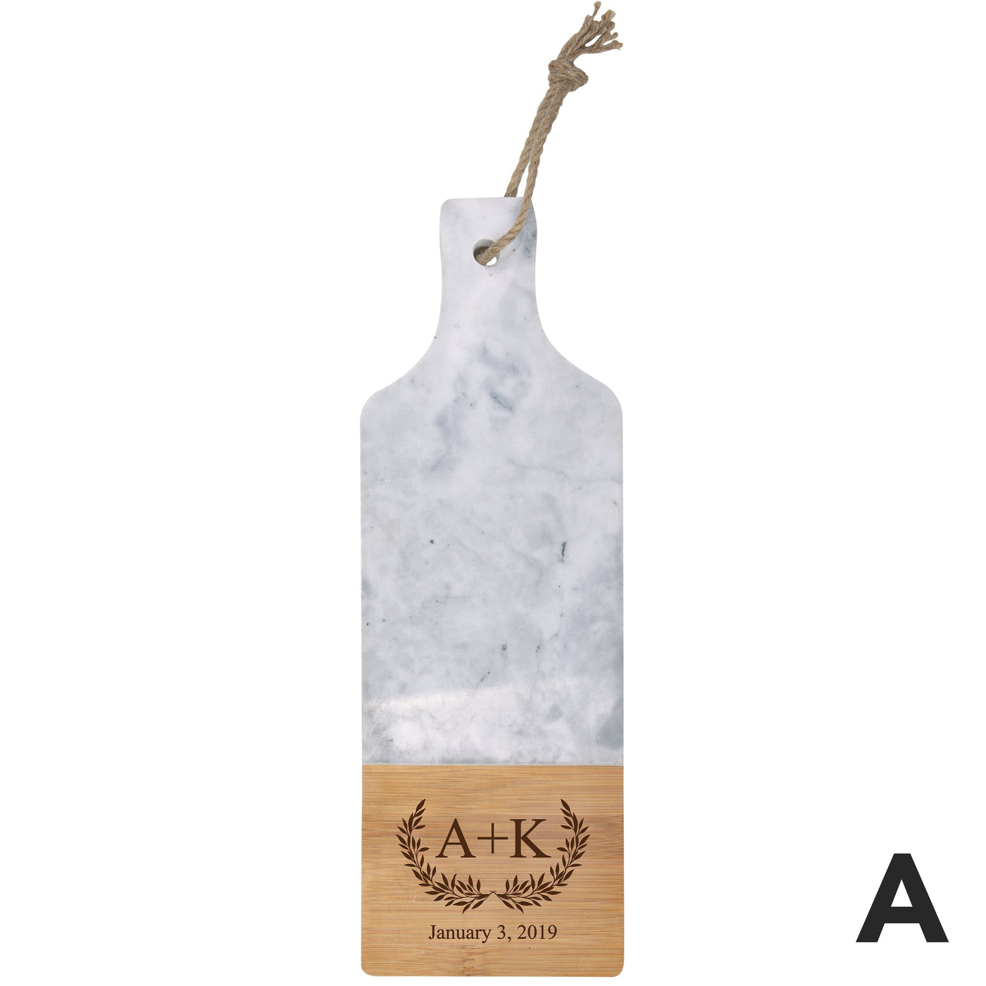 The perfect solution to entertaining guests, this personalized faux marble & bamboo serving board is great for displaying snacks and small bites. Add an image, name or date to make a one-of-a-kind gift for a family or friend.
