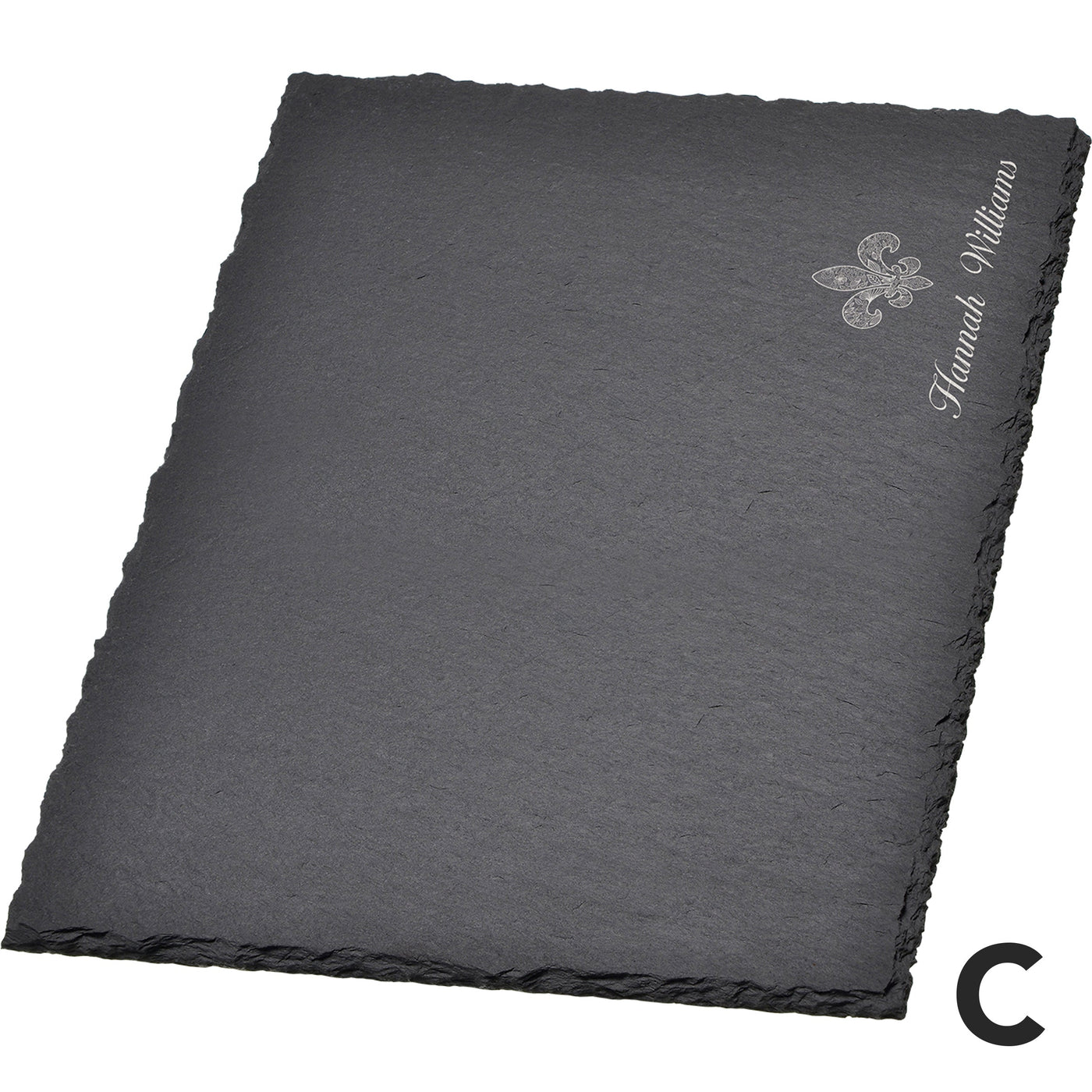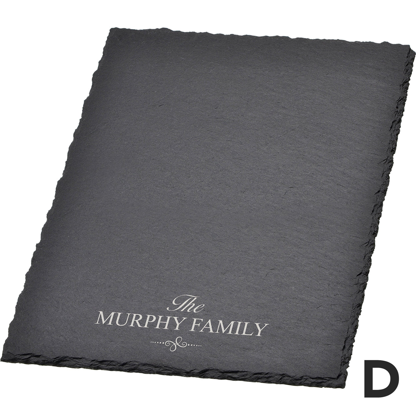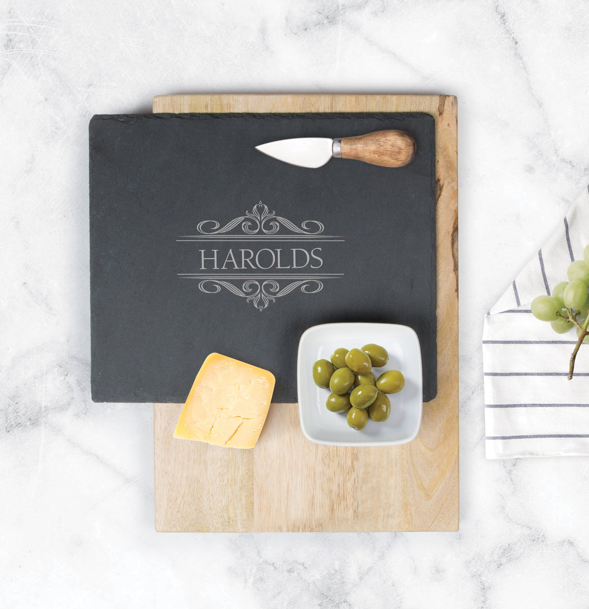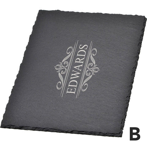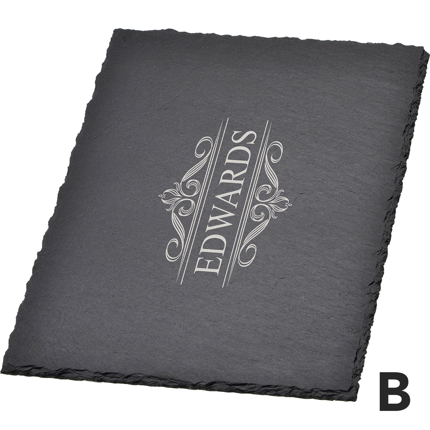 With the natural look and texture of this personalized slate cheese board, you can entertain guests with a complete sensory experience! Features four padded feet.