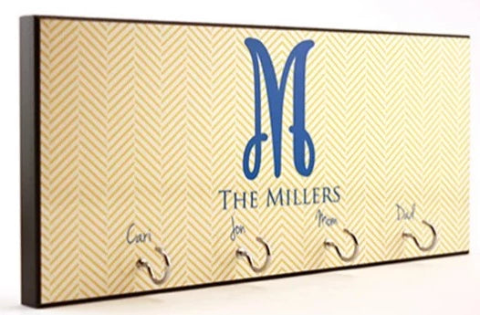A great home decor piece to be personalized. It has a chamfer edge and 4 silver hooks.