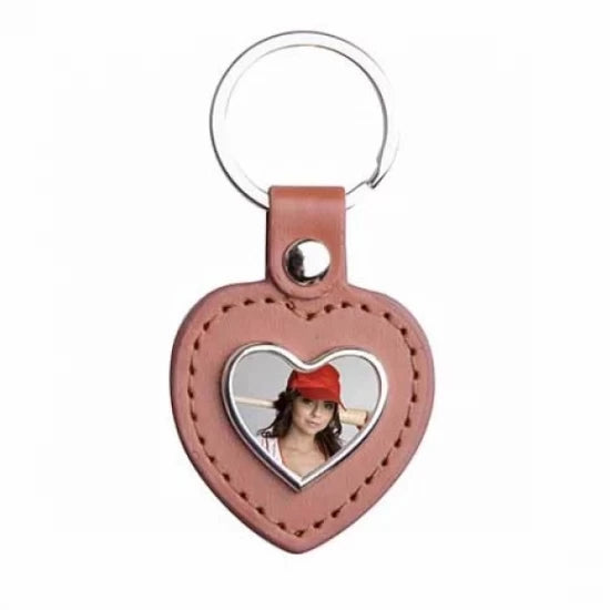 Key chain, zinc alloy + PU, round, brown, 4.2*8.5cm. You can imprint it with your favorite image.