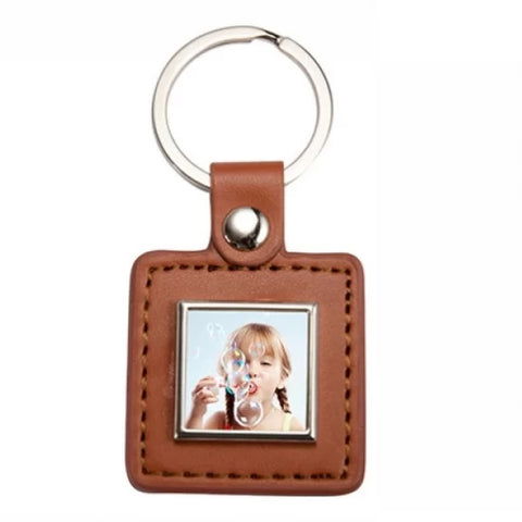 Key chain, zinc alloy + PU, round, brown, 4.8*3cm. You can imprint it with your favorite image.