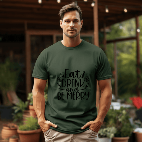 Elevate your casual style with our "Eat, Drink, and Be Merry" T-Shirt – a perfect blend of comfort and festive flair.