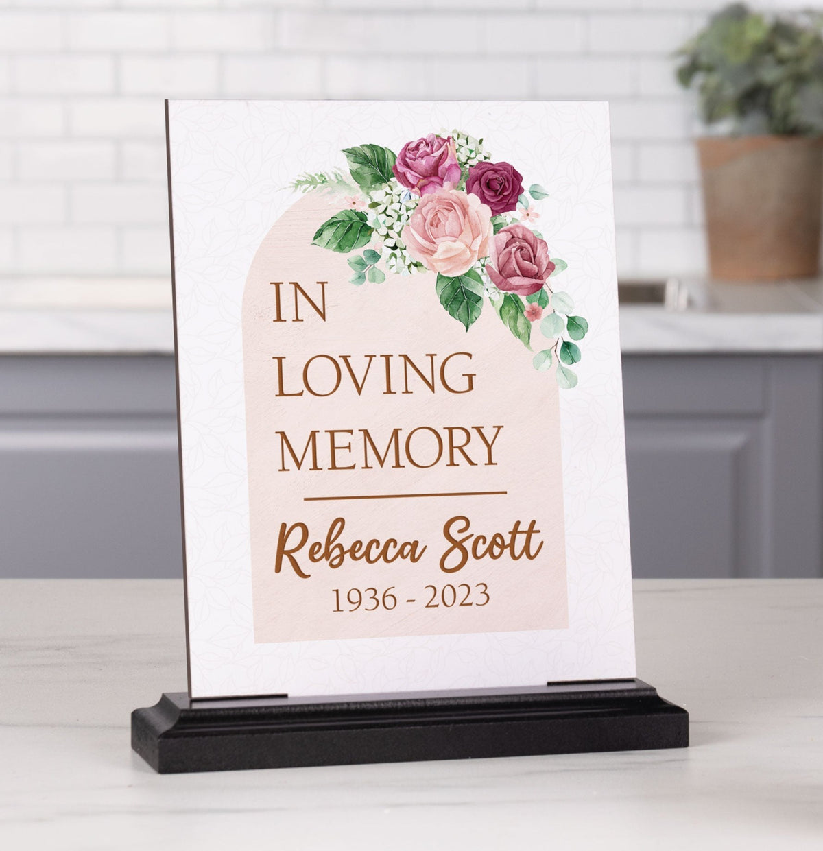 Elaborately designed, this customizable piece features unique embellishments and a traditional shape, as well as your own inspired sentiment or personalization. Includes black base for display at the perfect angle.