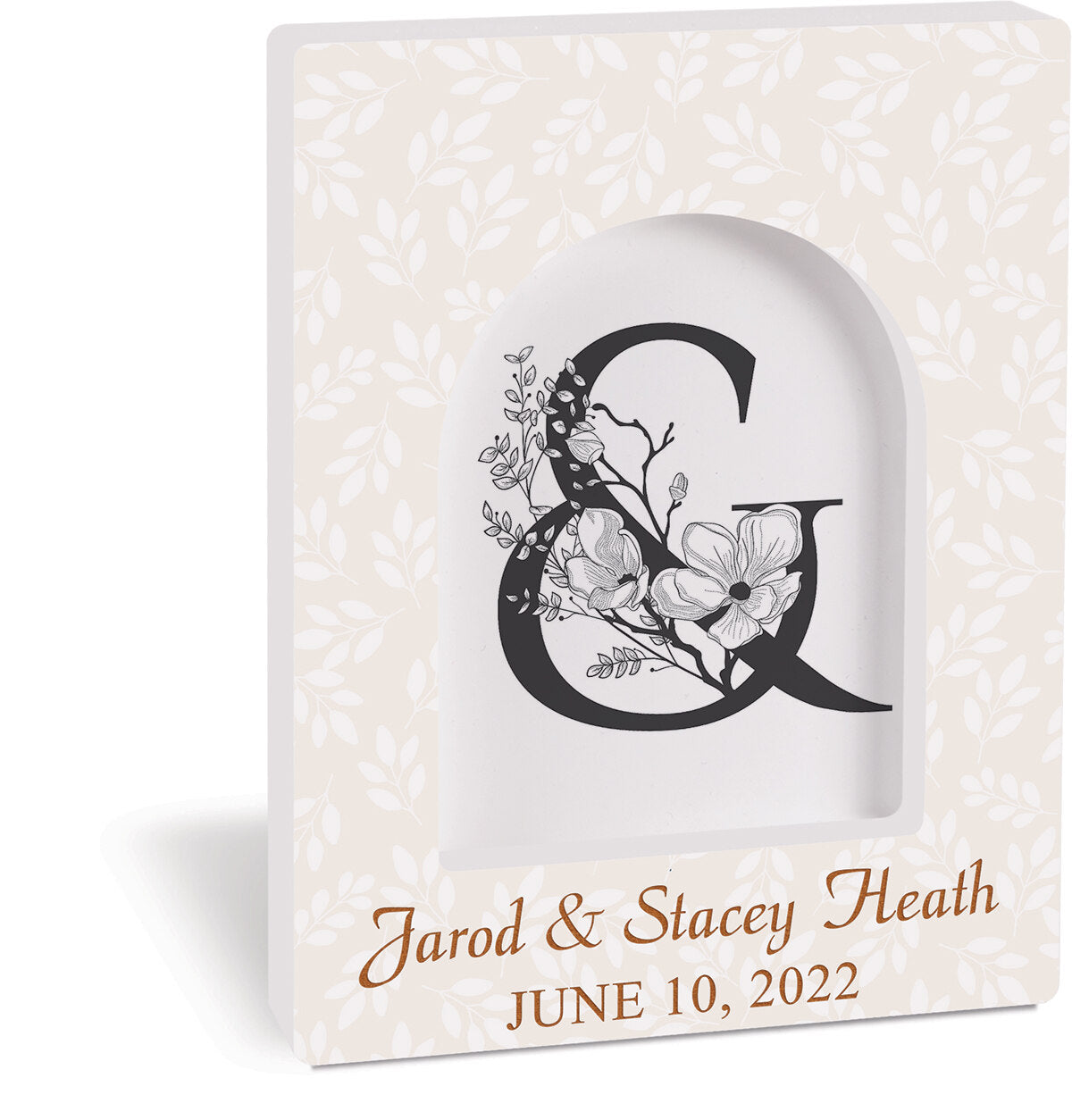 Elaborately designed, this piece features a unique embellishment and layered design, adding visual interest and texture. Personalize with a name, date, or sentiment to create a stunning addition to a shelf, desktop, or counter.