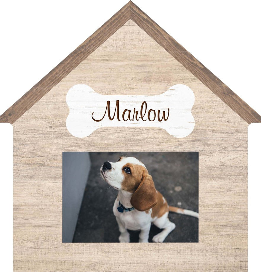 This fun, dog house-shaped photo frame can be engraved with your furry friends name. A perfect accent for a counter, coffee table, or nightstand.