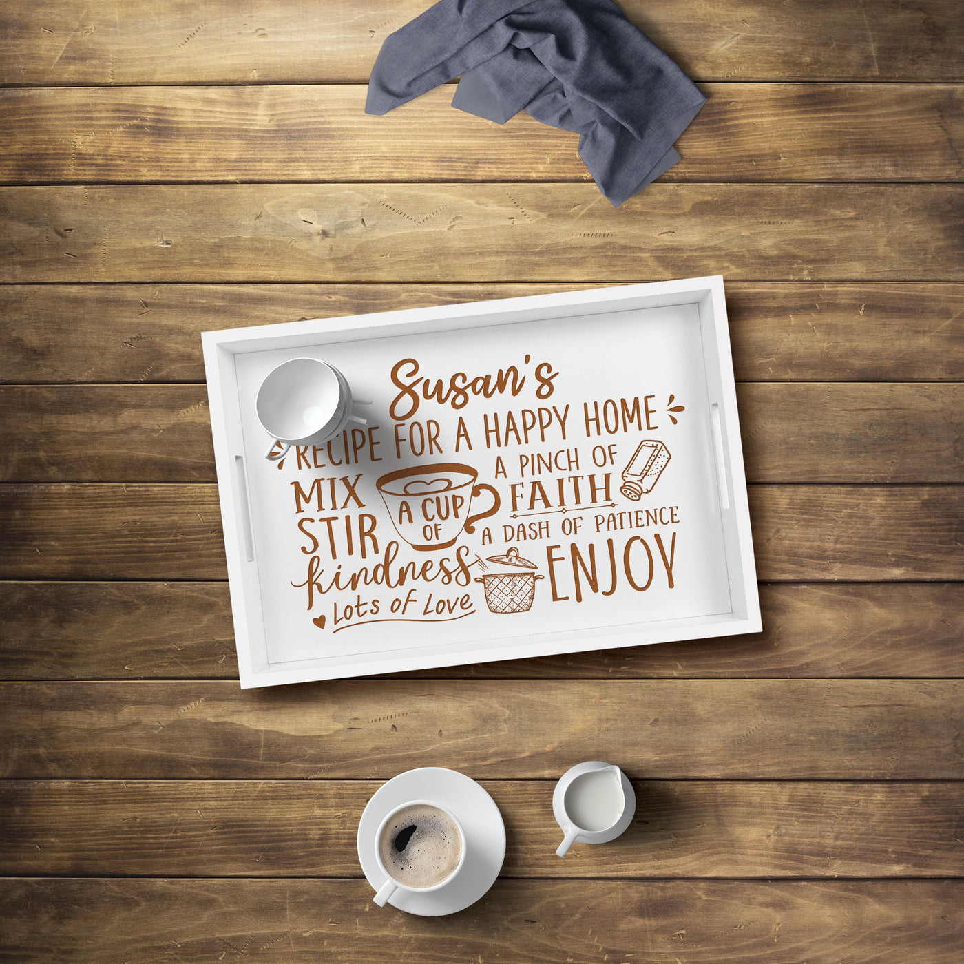 To ensure a personalized look while entertaining, serve your guests with a one of a kind tray that can hold your sweet tea and lemonade.