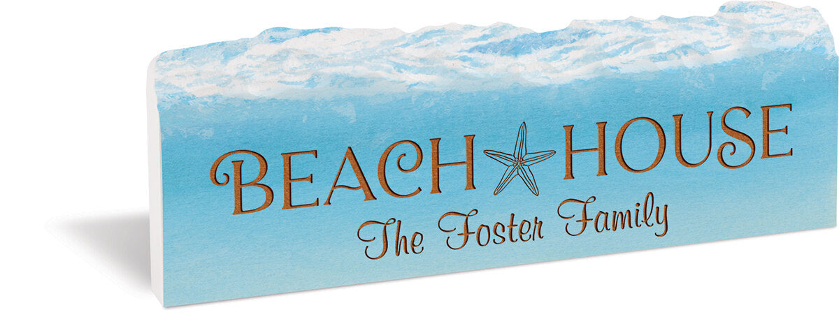 Bring the outdoors inside with personalized décor the replicates the look of ocean waves and features a blank slate for a unique message.