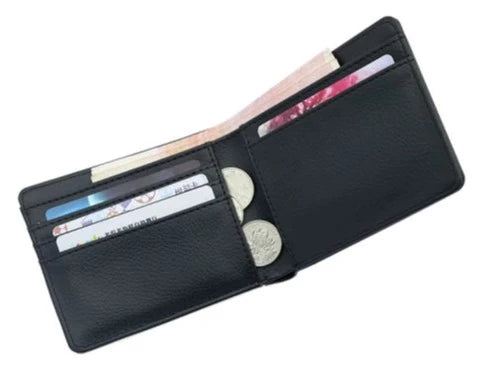 Our P/U (poly urethane synthetic leather) wallets will be a big hit with all men! These strong constructed wallets are water resistant (transfer area) makes it more durable than fabric front wallets and with so many slot all items can be safe and secure! This wallet has a separate slot for ID.