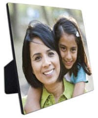 ChromaLuxe white gloss wood photo panels with a pre-attached easel have a black edge