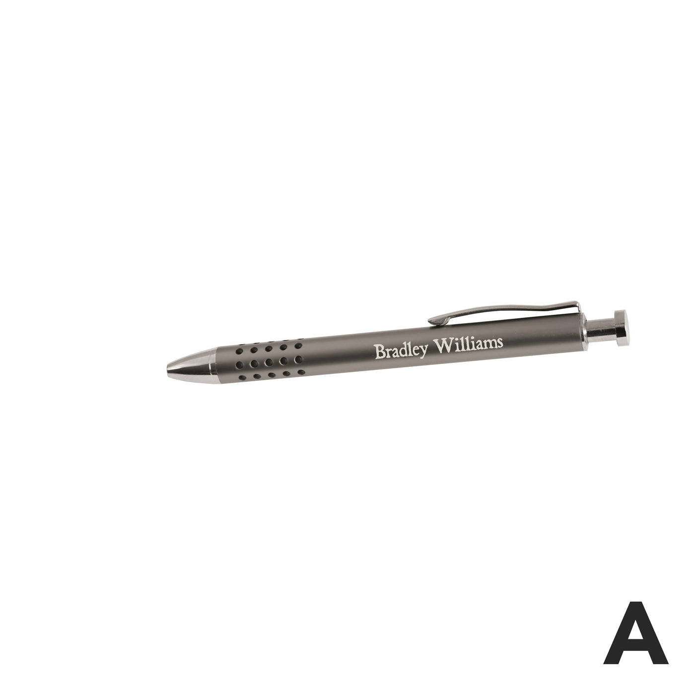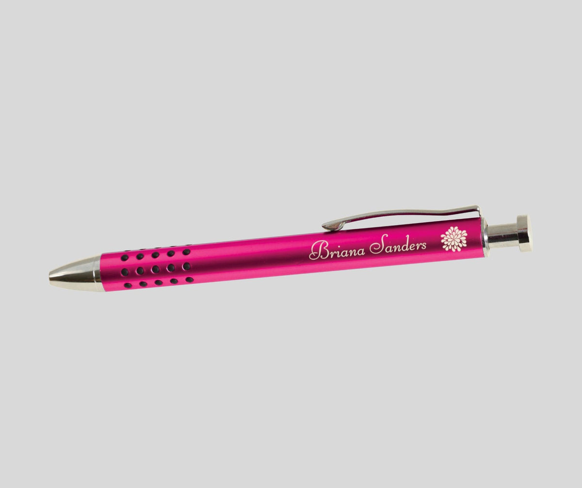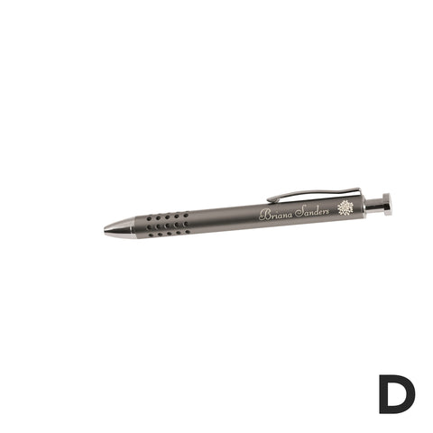 This slick metal pen is a marriage of function and beauty. Engraved with your name or personal message it will quickly become one of your favorite pens to use and show off!
