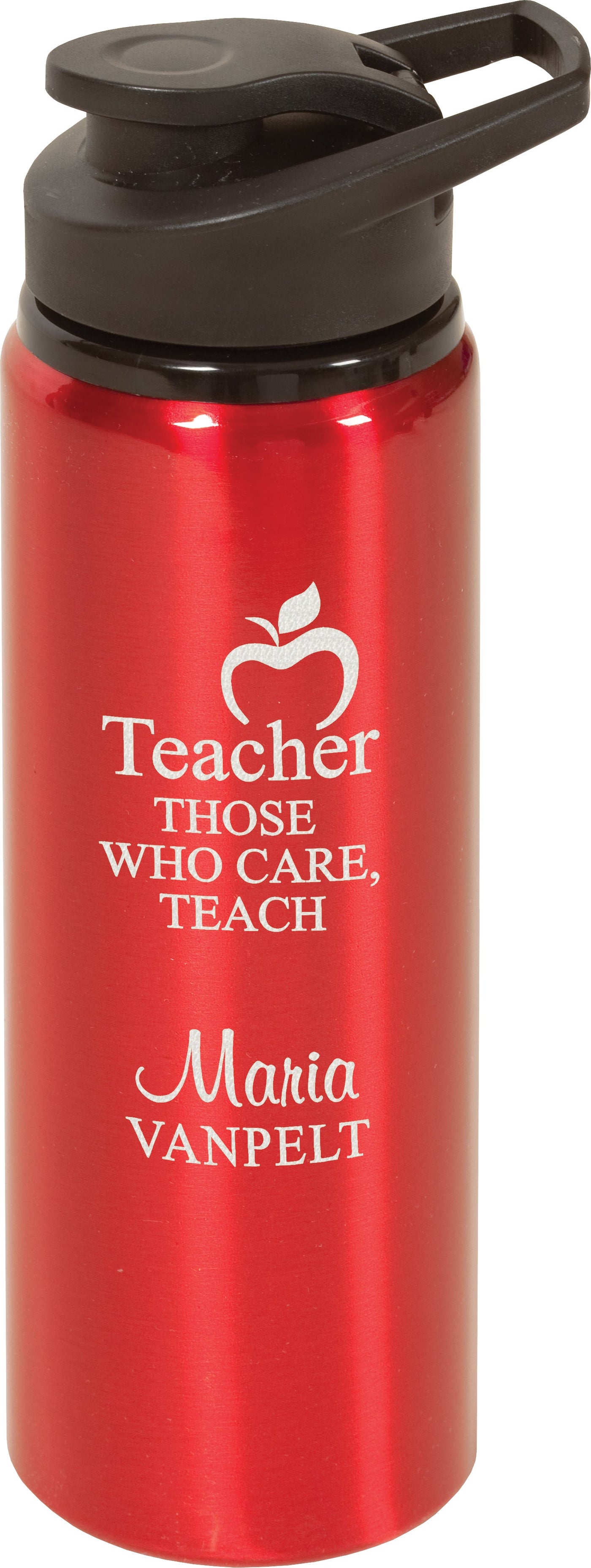 Whether you are headed to the gym, school or work - it's important to stay hydrated. This personalized, lightweight aluminum water bottle is great when you're on the go. Add your favorite team, sentiment, or image, plus your name! Wide screw top for ice, easy flip lid for drinking, and loop handle for carrying, 26 oz. capacity.