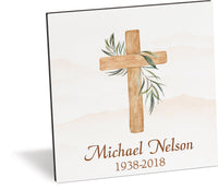 Add your own inspirational or commemorative message to this personalized plaque that features a simplistic cross design. Includes an easel for simple display throughout the home.
