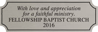 Here is an inexpensive way to personalize most any gift. This silver plate can be lasered with text of your choice. Great for a picture frame, plaque, or other gift item.