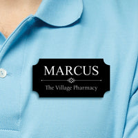 No more pin holes or wrinkled shirts! Our acrylic name badges are attached to your clothes using a magnetic strip. These long-lived badges are ideal for the work place, church gatherings, or special occasions.