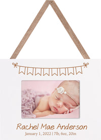 Life is full of precious moments worth remembering - weddings, vacations, get togethers, and more. This frame accentuates these memories by pairing photos with the sentiment and clipart of your choice. Features a burlap ribbon for hanging from an ornate hook or decorative knob. Displays (1) 4x6 photo.